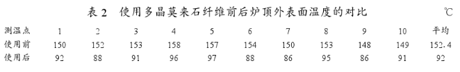 通過使用多晶莫來石纖維,可以取得一定的經(jīng)濟效益,而且在很大程度上改善了操作環(huán)境,同時對加熱爐爐頂也有一定的保護作用,可以延長其使用壽命。