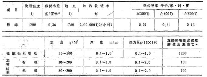 硅酸鋁耐火纖維紙具有重量輕、耐高溫、導熱系數低、抗熱震性好,對電絕緣、隔熱保化學性能穩定,不受油、蒸.氣、水和許多溶劑影響,能耐一般的酸鹼(只受氫氟酸、磷酸和強鹼所侵蝕),與很多金屬(Ae、Pb、Sh、Ch及其合金)不潤濕。現為越來越多的生產和科研部門采納使用。有關理化性能列表于后:
